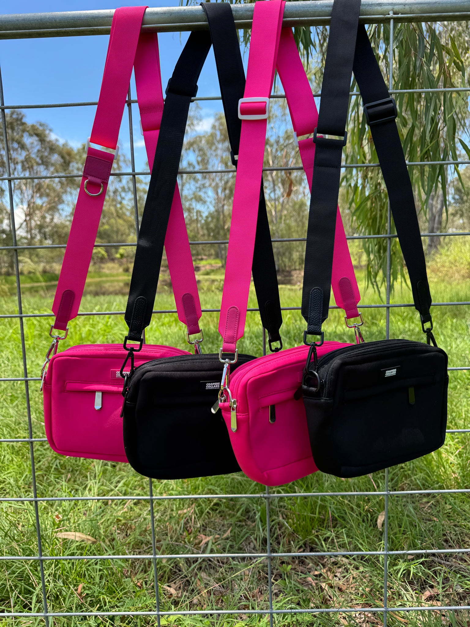 Elevate your look with function and style. Featuring 4 main zipped compartments plus a hidden zipped secret pocket. Totaling 5 zipped compartments. In addition to this there are several designated card holder slots for frequent sippers on the go. Two internal mesh pouches for easy to find items including one that feeds through to a designated bag dispenser. This bag really has it all!!! Adjustable cross body strap to sling over your shoulder, over the pram handle or lengthen for inclusive sizing across your body. Made from beach friendly neoprene fabric this is the perfect gift for you or your favourite dog crazy friend.